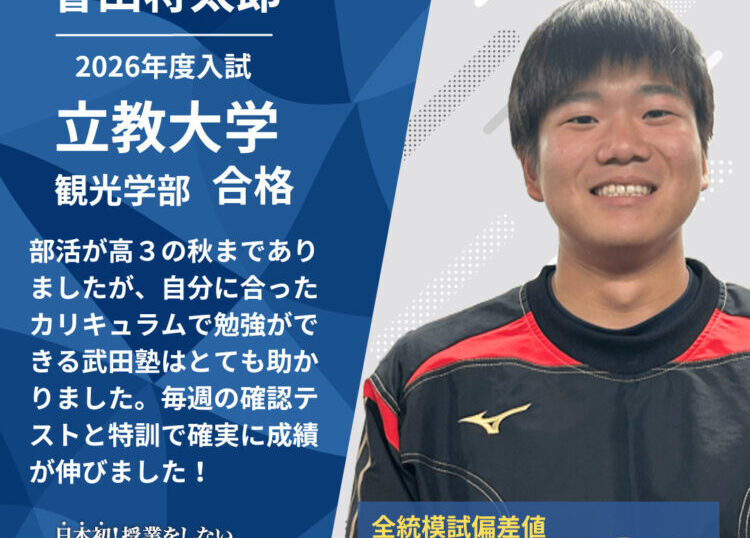 今回は、武田塾の勉強法を実践し、立教大学環境学部に見事合格した