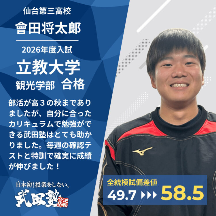 武田塾仙台駅前校・會田将太郎さん の合格体験記を紹介します!