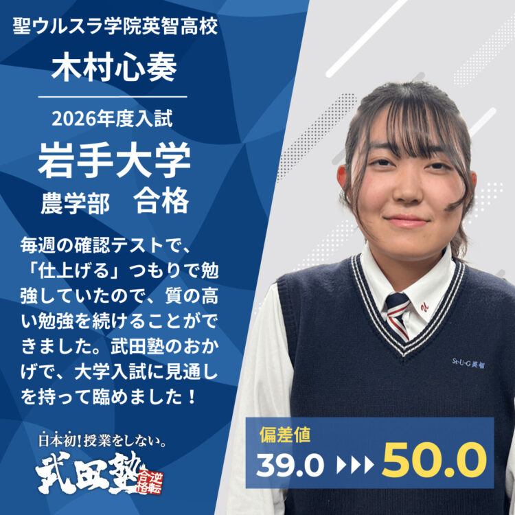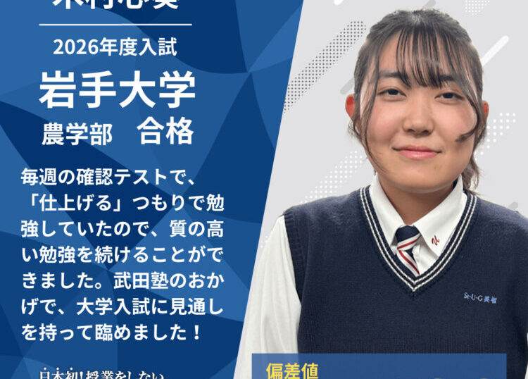 武田塾仙台駅前校・木村心奏さん の合格体験記を紹介します!