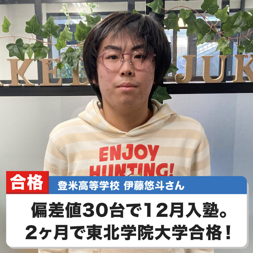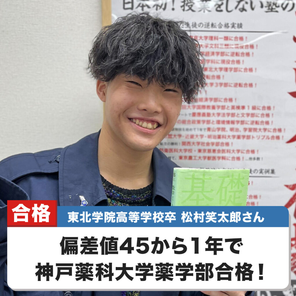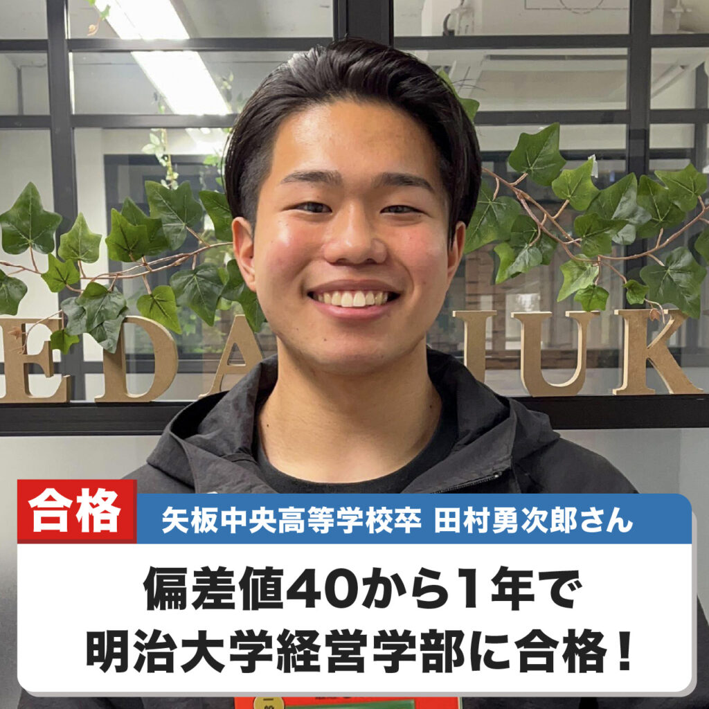 合格実績今年もたくさんの生徒が武田塾で逆転合格を成し遂げました。医学部医学科、難関国公立、MARCHなど、合格を掴んだ先輩たちの体験記を厳選して掲載しています。さあ、次はあなたの番です。医学部医学科広島大学医学部医学科写真をクリックして合格体験記をチェック!岩手医科大学医学部医学科写真をクリックして合格体験記をチェック!国公立大学北海道大学総合理系写真をクリックして合格体験記をチェック!千葉大学工学部写真をクリックして合格体験記をチェック!横浜国立大学理工学部宮城大学看護学部写真をクリックして合格体験記をチェック!山形大学工学部写真をクリックして合格体験記をチェック!山形大学地域教育文化学部写真をクリックして合格体験記をチェック!埼玉大学工学部写真をクリックして合格体験記をチェック!秋田大学理工学部写真をクリックして合格体験記をチェック!私立大学明治大学情報コミュニケーション学部明治大学文学部写真をクリックして合格体験記をチェック!明治大学政治経済学部法政大学経営学部写真をクリックして合格体験記をチェック!中央大学商学部写真をクリックして合格体験記をチェック!中央大学理工学部写真をクリックして合格体験記をチェック!法政大学理工学部芝浦工業大学工学部写真をクリックして合格体験記をチェック!東北学院大学経済学部東北学院大学文学部写真をクリックして合格体験記をチェック!過去の合格実績写真をクリックして合格体験記をチェック!写真をクリックして合格体験記をチェック!写真をクリックして合格体験記をチェック!写真をクリックして合格体験記をチェック!写真をクリックして合格体験記をチェック!写真をクリックして合格体験記をチェック!写真をクリックして合格体験記をチェック!写真をクリックして合格体験記をチェック!写真をクリックして合格体験記をチェック!写真をクリックして合格体験記をチェック!写真をクリックして合格体験記をチェック!写真をクリックして合格体験記をチェック!写真をクリックして合格体験記をチェック!写真をクリックして合格体験記をチェック!