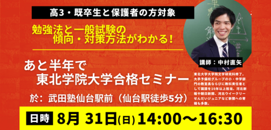 - 対象:東北学院大学合格を目指す高3・既卒生/保護者
