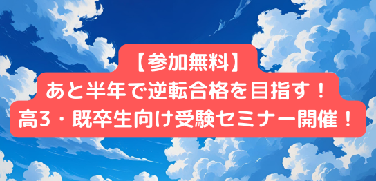 【参加無料】あと半年で逆転合格を目指す!高3・既卒生向け受験セミナー開催! こん