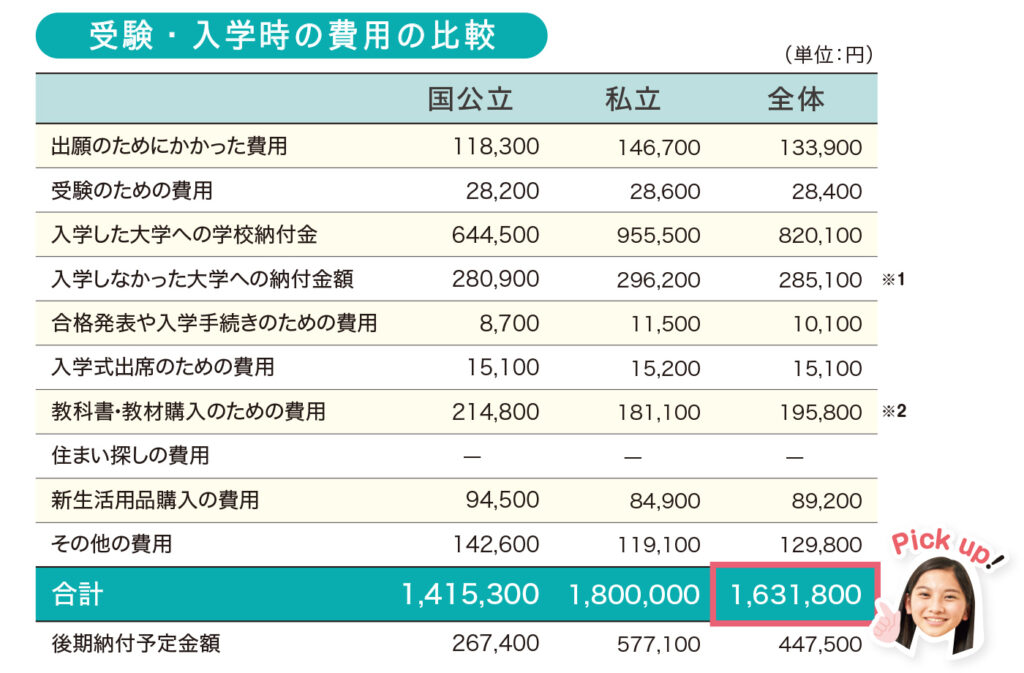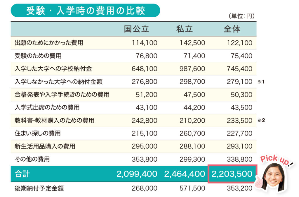 それ以外にも「入学しなかった大学への納付金額」や「教科書・教材購入のための費用」