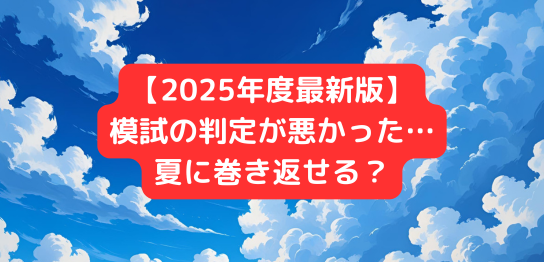 ブログ2025年6月27日2025年度大学受験, 共通テスト対策, 判定が悪い, 受験生の悩み, 夏からの巻き返し, 夏の勉強法, 夏休みの勉強法, 模試, 模試の活用法, 武田塾, 逆転合格, 高校生向け【2025年度最新版】模試の判定が悪かった…夏に巻き返せる?はじめに 2025年度の受験シーズン、いよいよ本格化してきましたね。 春の模試がRead More