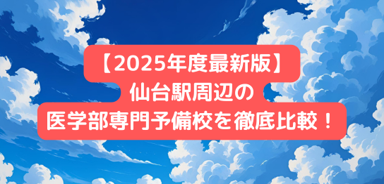 ブログ2025年7月24日仙台 メディカルラボ, 仙台 医学部 塾, 仙台 医学部予備校, 仙台 駿台 医学部, 仙台駅 予備校, 医学部 予備校 費用, 医学部 合格戦略, 医学部 浪人生, 医学部予備校 比較, 医学部予備校 選び方, 武田塾 仙台駅前校【2025年度最新版】仙台駅周辺の医学部専門予備校を徹底比較!医学部合格を目指す上で、どの予備校を選ぶかは非常に重要です。特に仙台駅周辺には多Read More