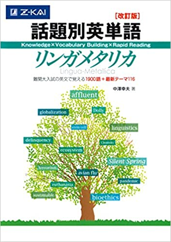 リンガメタリカは単語帳ではありますが、経済・環境・医療・心理学など、2次・私大入試に頻出のジャンルを扱った全11章、50の文章が載っている、少し難しめの参考書です。